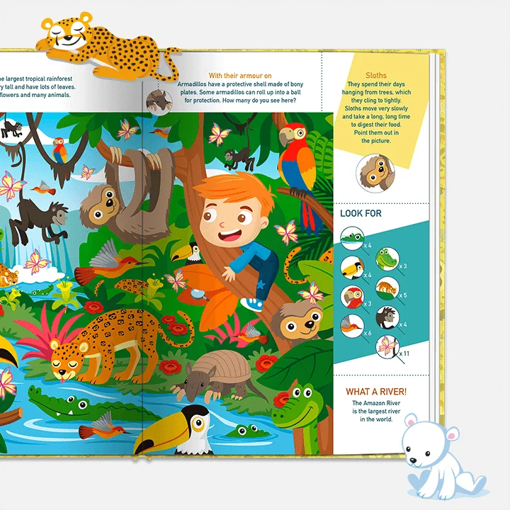 In this personalized story, travel through 6 unique worlds and find more than 1000 animals! Bursting with detail, this will keep you having fun for hours!