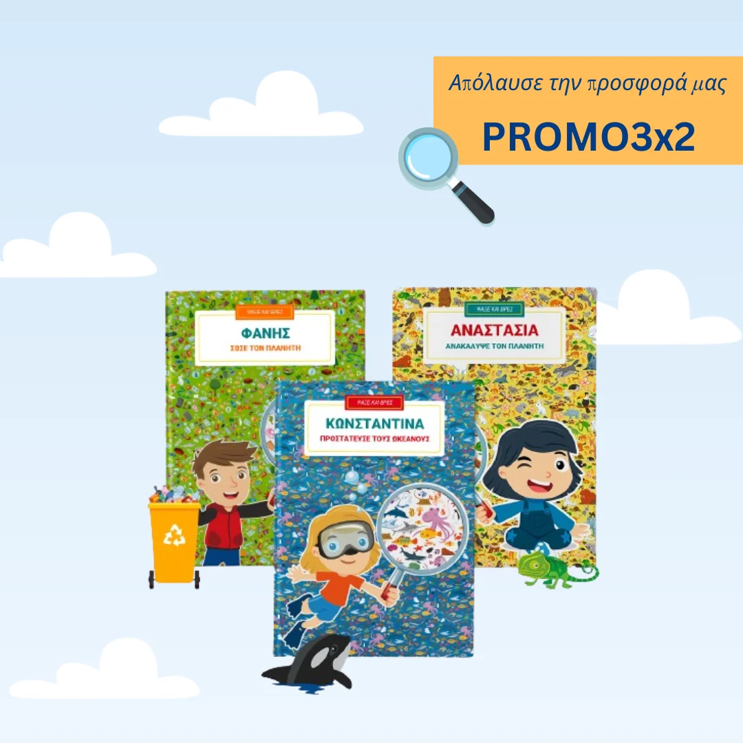 Ανακάλυψε την κορυφαία σε πωλήσεις σειρά μας με προσωποποιημένα Ψάξε και βρες βιβλία. Τώρα, πλήρωσε 2 και απόκτησε 3 με τον κωδικό PROMO3x2.