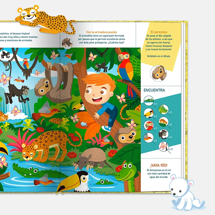 Un cuento personalizado para buscar y encontrar, con 6 escenarios diferentes y más de 1000 animales.