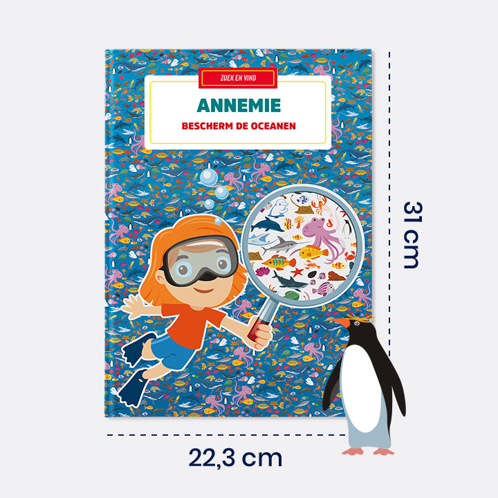 Een gepersonaliseerd zoek-en-vind-boek met 8 wondere waterwerelden, vol bijzondere vissen en andere dieren. Duik in het avontuur!