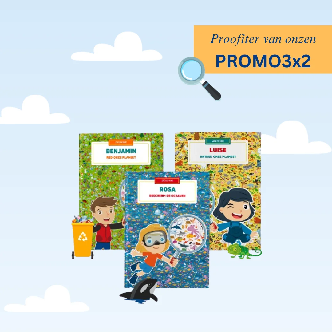Ontdek onze reeks gepersonaliseerde zoek-en-vindbestsellers. Krijg er 3 voor de prijs van 2, nu met de code PROMO3x2.